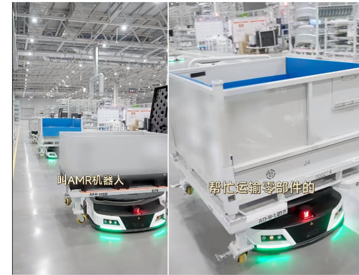 这些自主移动机器人配备了先进的导航和避障系统,能够在复杂的工厂环境中自主移动,并精确完成各种搬运任务。每台机器人都可以与近200个存储位置对接,实现物料的精准搬运和摆放。这些机器人不仅可以减少人力成本,还能显著提高生产线的整体效率和生产能力 。