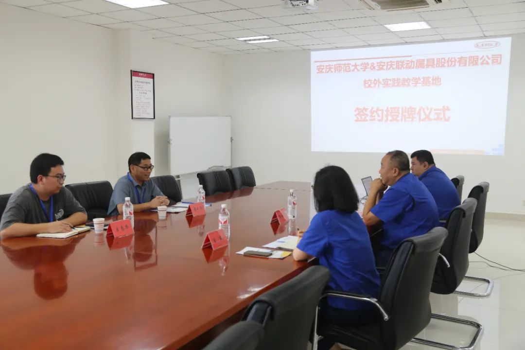 王丽首先代表联动属具公司对章礼华一行的到来表示热烈欢迎。她表示,此次实践教学基地的建立,不仅为安庆师范大学的学生提供了更加丰富的实践机会,也为联动属具公司的技术创新与人才储备注入了新的活力,丰富拓展了校企联合培养人才的模式。同时,也希望双方能在科技研发、技术创新等领域加强协作联动,共同推动产学研合作,实现资源共享、优势互补、共赢发展。