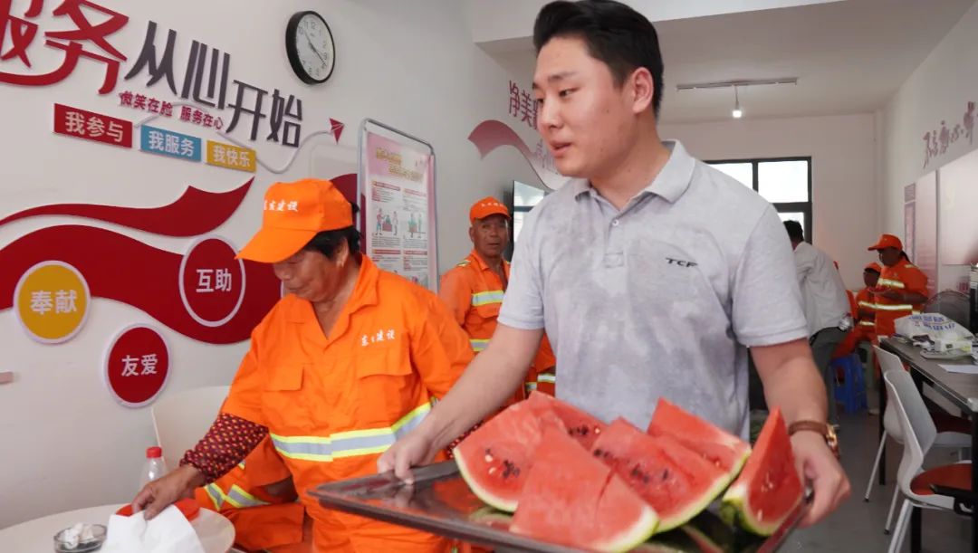 环卫工人接过西瓜纷纷表示吃下去整个人都凉快了,在炎热的天气能收到这样一份贴心的关怀,让他们感到十分温暖和感动,这些清凉物资无疑为他们的工作带来了极大的便利与舒适。TCF团队与环卫工人亲切交谈,询问了解一线工人在高温下的工作情况和身体状况,希望大家在工作中要注意自我保护,注意劳逸结合谨防中暑,确保工作安全。