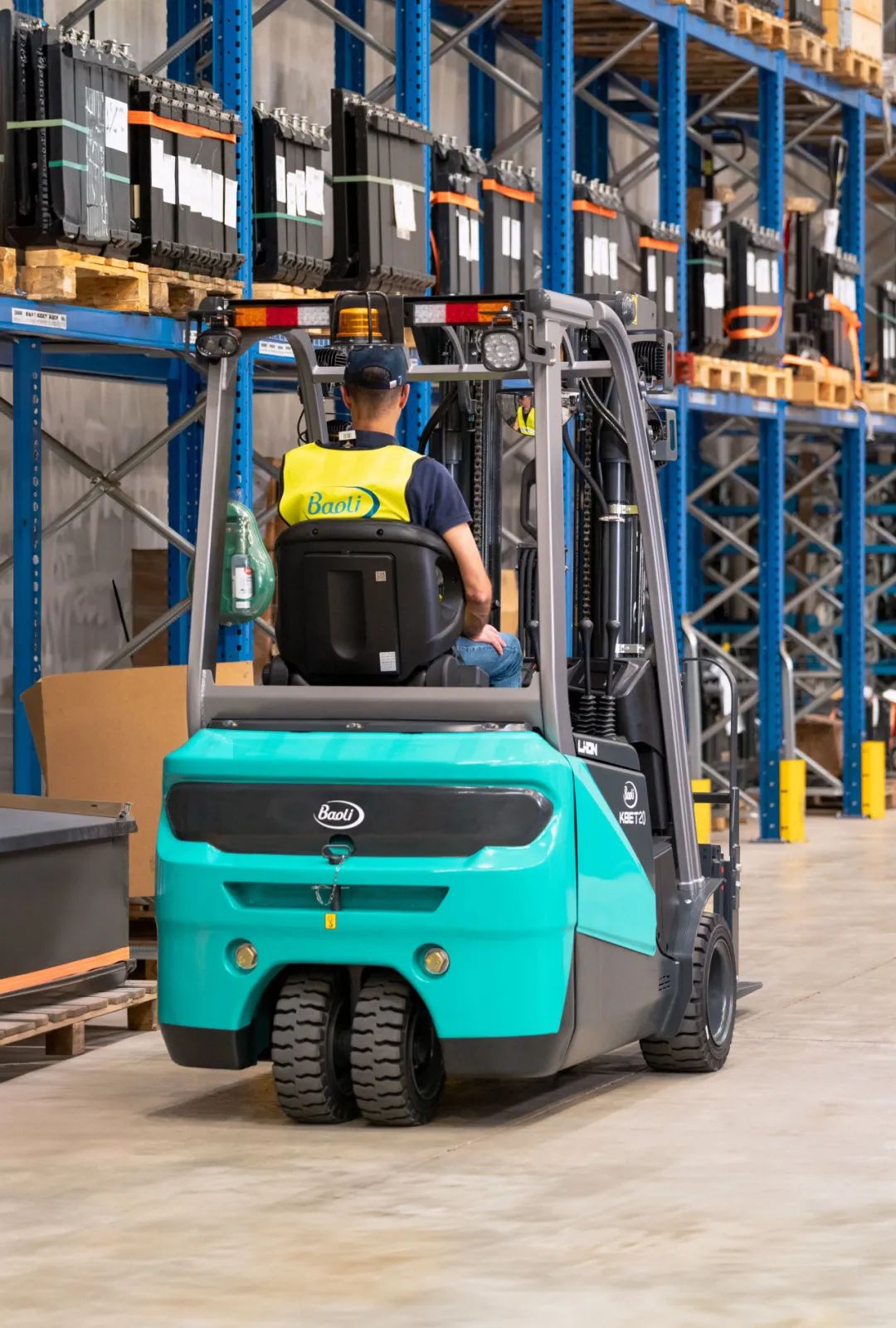 KBET 15-20 Li 系列由两个前电动机和一个交流技术升降电机提供动力,使整车动力输出稳定且能耗低,叉车行驶速度自然快,还能轻松驾驭坡道。另外,该车配备了湿式制动器,车辆维护成本也大大减少。这些优势都印证了宝骊叉车坚持可持续和高效性能的承诺。