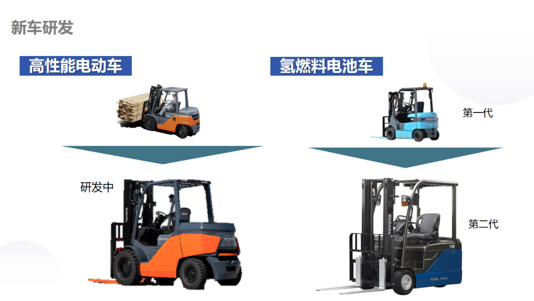 而丰田叉车为了把握这样的机遇,我们也在不断进行革新进步。为了领航低碳转型,集团正在开发可以替代内燃车的高性能电动车。第二代氢燃料电池叉车也已经在部分地区导入。