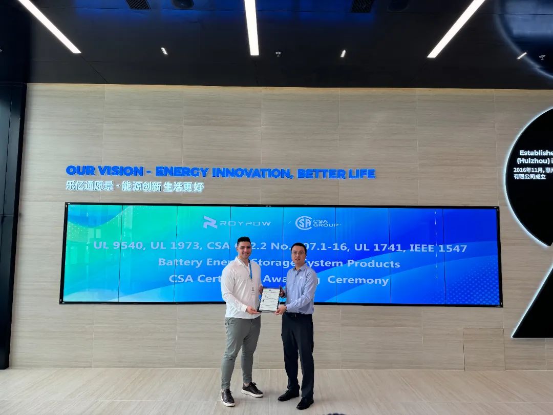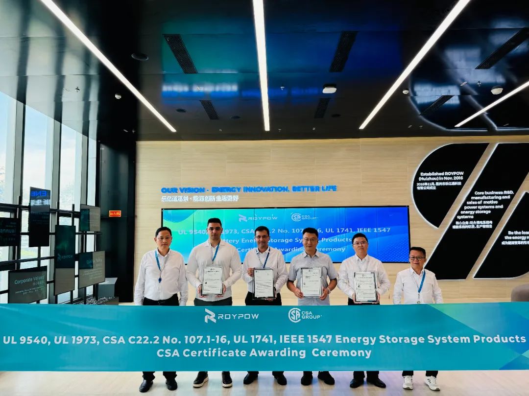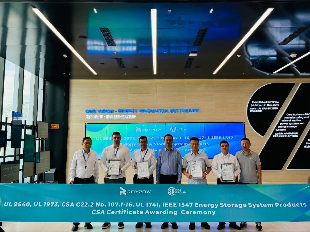 当天仪式上,CSA集团颁发该产品系列CSA认证证书,作为其储能产品进入北美市场的准入认可。CSA集团中国区工业与新能源产品事业部商务总监吴巍, 乐亿通研究院技术专家、电池系统部、测试中心、项目部、储能营销部、海外业务部等代表出席了现场颁证仪式。