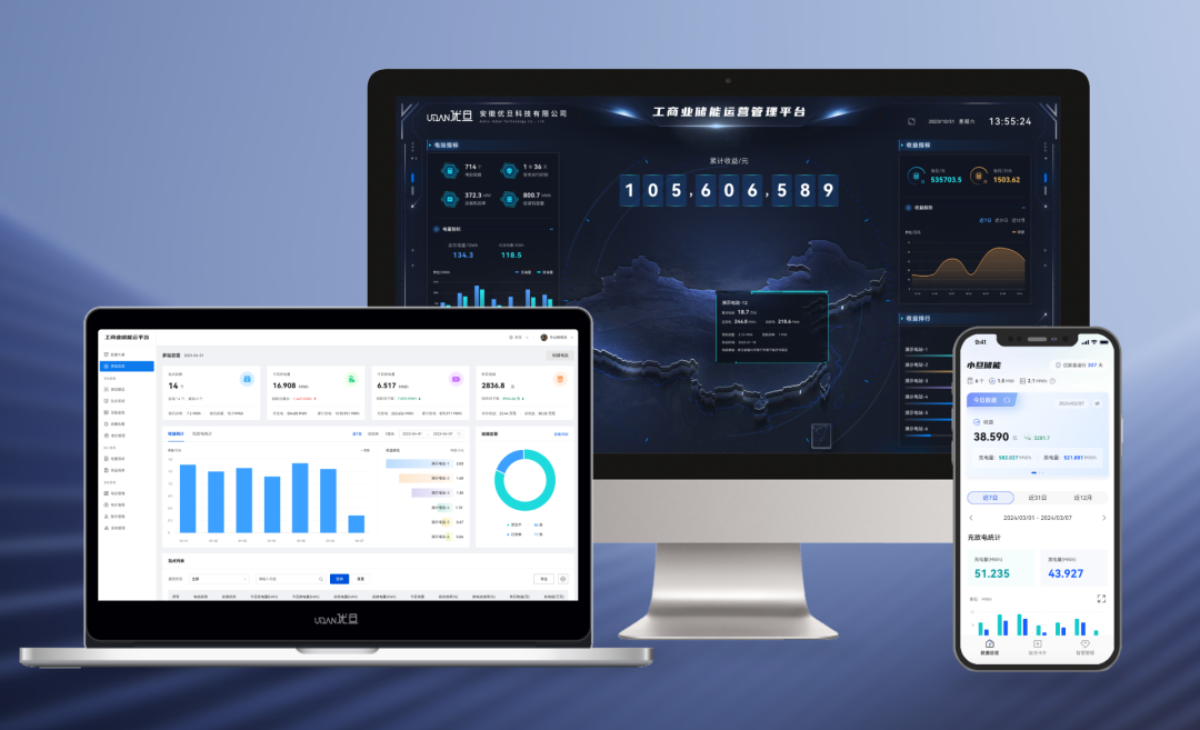 针对该项目容量小、运维成本高等特点,优旦科技工商业储能全生命周期智慧运营平台与iEMS、iBMS智能硬件双向互联,实时监控电池系统、PCS、电表等设备运行数据&告警数据,自动生成电量报表&收益报表等,提供智慧运维、远程集控、安全预警、全站系统软件OTA等全生命周期智能管理服务。