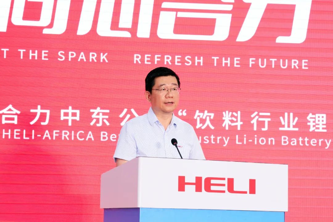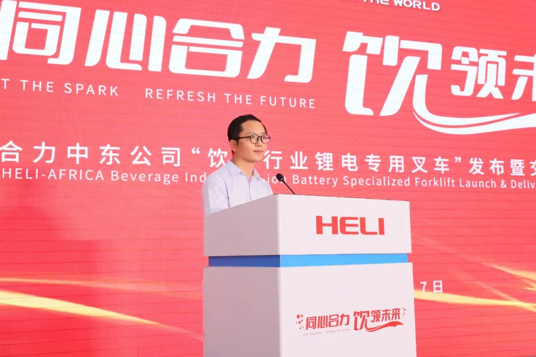 仪式上,周峻向远道而来的肯尼亚合作伙伴表示真挚的欢迎与感谢,并作重要讲话。他表示,合力始终坚持专业化发展,以创新力、品牌力巩固核心竞争优势,不断加快国际化布局,以“双循环”“走进去”融入全球市场,在建设世界一流企业的征程中书写新时代的合力故事。他强调,合力致力于为全球用户提供全价值链、全场景一站式物料搬运解决方案,本次隆重推出饮料行业锂电专用叉车,是合力瞄准细分领域市场需求,推动行业创新发展的又一次生动实践,相信定能为全球饮料行业创造更大的价值,为合力全球化战略注入更加澎湃的动力。