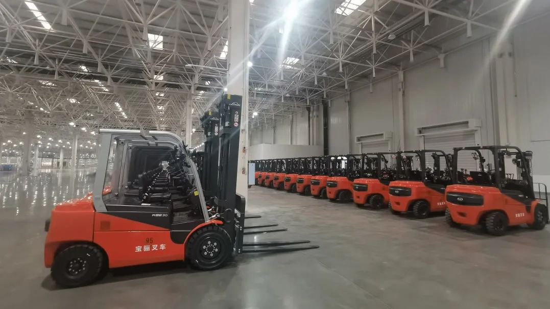 近日,在某国产新能源汽车领军品牌的核心生产基地,举行了一场引人注目的交车仪式。宝骊向该客户成功交付了270多台电动叉车,包括宝骊X3锂电平衡重叉车、ET30-101牵引车、EP20-111托盘车等多种车型,为其绿色制造注入更为强劲的动力。