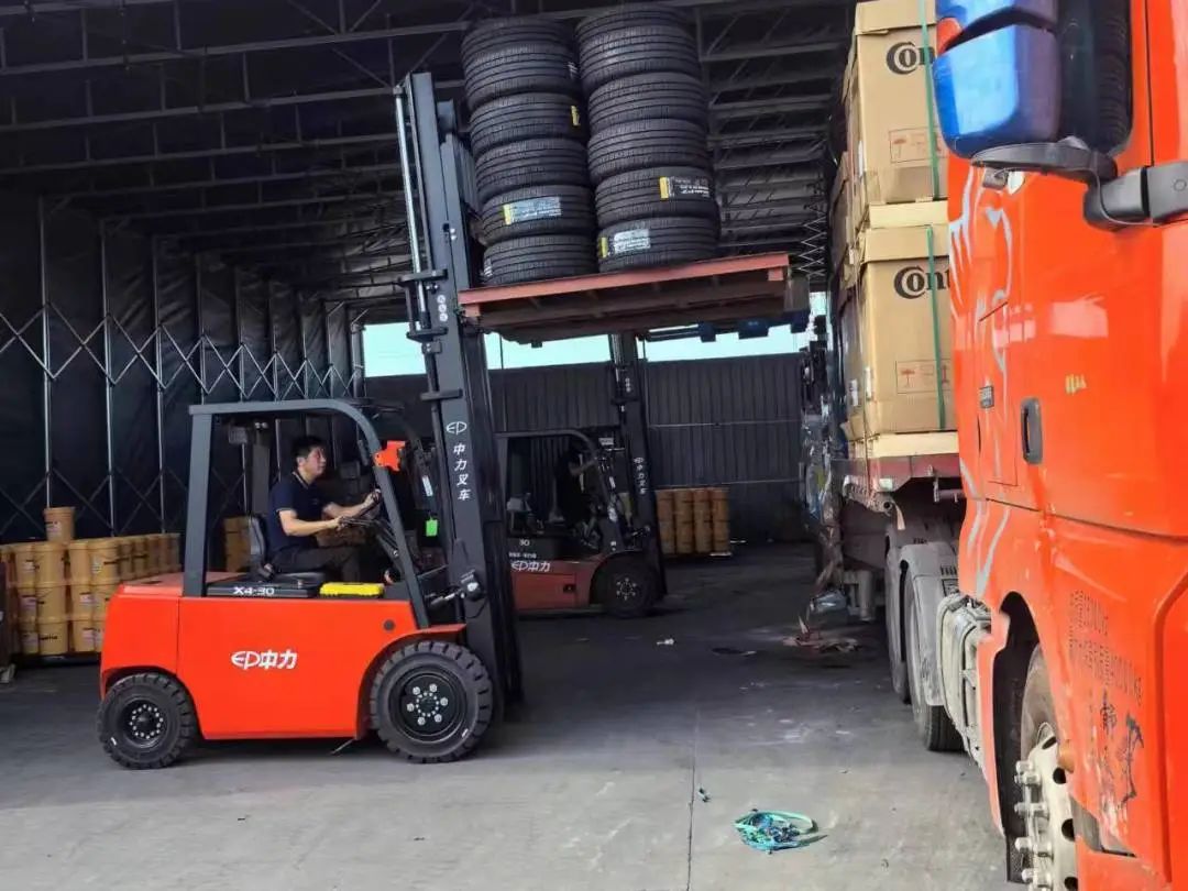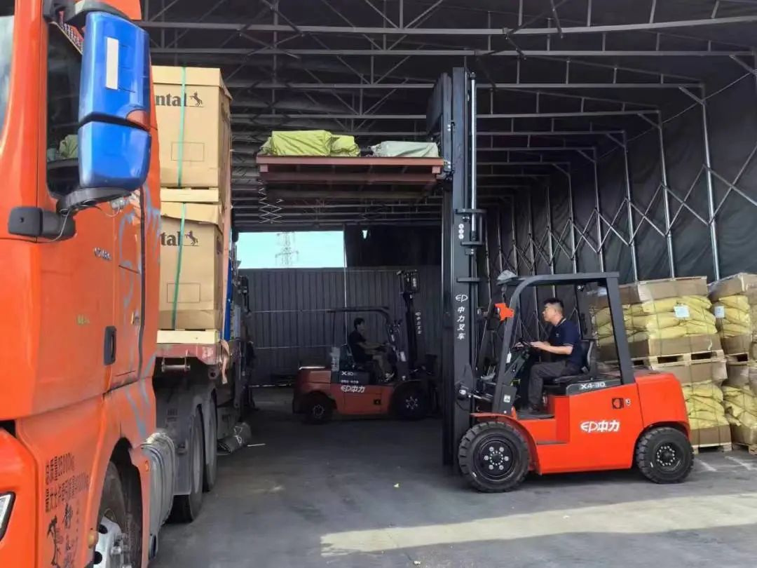 中力换电站解决方案成功落地山东某物流园区,众多X4手提换电锂电叉车应用于档口商户,出色解决货物装卸、搬运及堆垛等。
