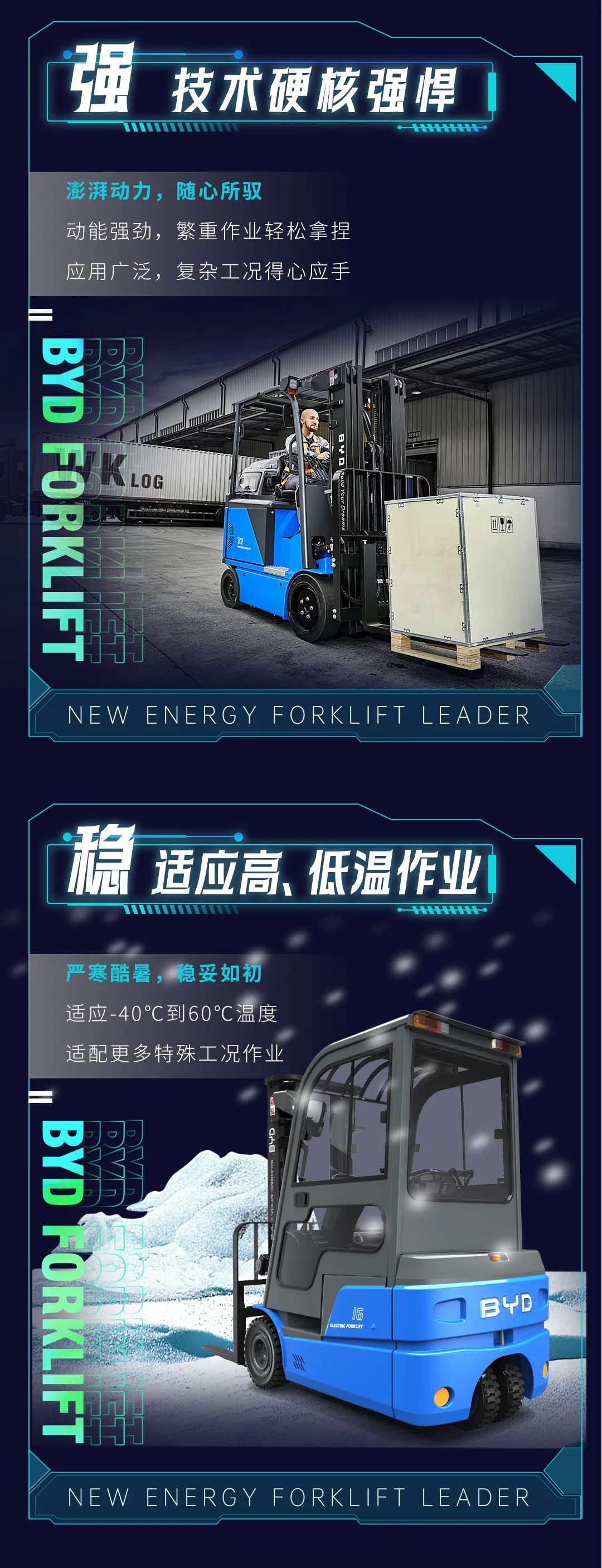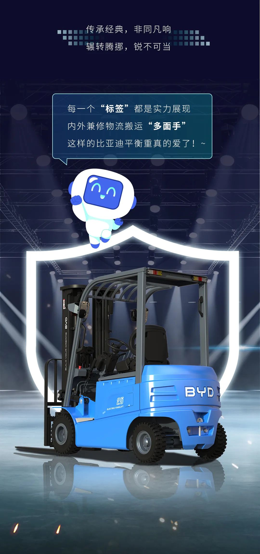 【研发实力】 比亚迪始终坚持“技术为王,创新为本”的理念,在电动叉车研发上投入技术研发人员150人,其中专项研究电器和液压的博士2名,硕士32名,国家211重点本科院校毕业生97名。具备同时研发平衡重式、托盘式、前移式、堆垛式四大系列纯电动叉车的能力。