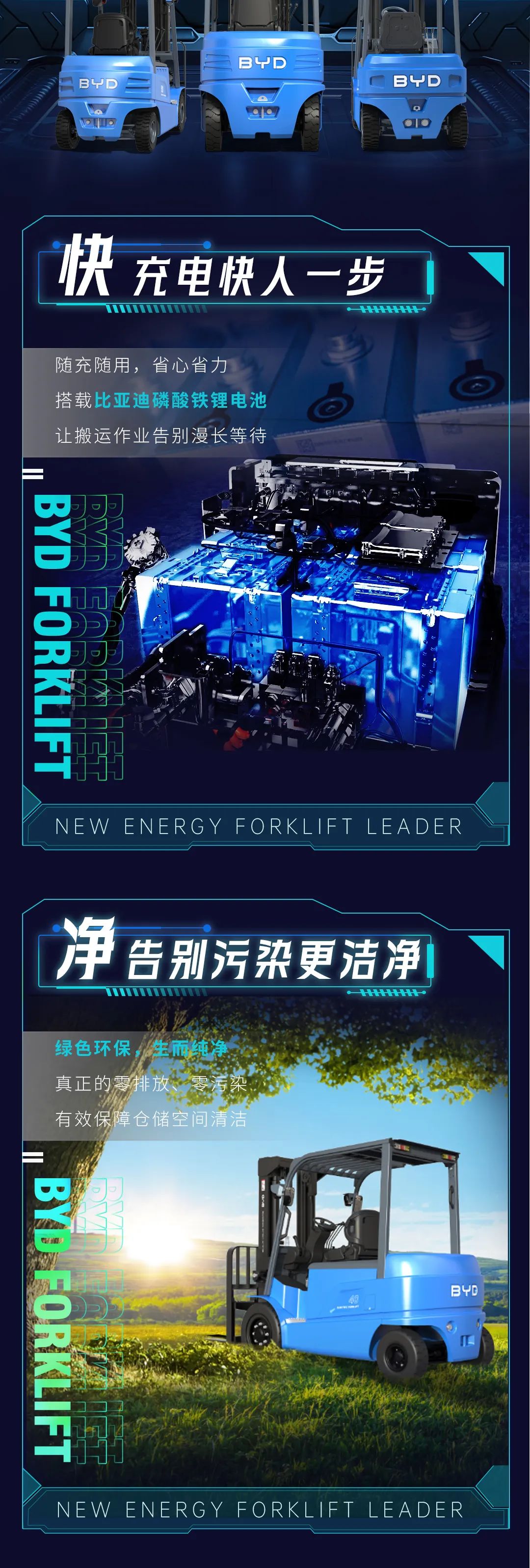 比亚迪作为全球电动汽车的领导者,是全球少有的掌握了动力电池、电源管理、电控、电机等电动车核心技术的企业。比亚迪最为核心的铁电池技术已经成功应用于比亚迪纯电动汽车e6和纯电动大巴K9,其中e6单车最高行驶里程已超过28万公里,品质得到了市场的检验。基于电动汽车的巨大优势和近年来国际物流行业的蓬勃发展趋势,比亚迪于2010年毅然进军叉车行业,推出了全球首款搭载铁电池的电动叉车,完成了比亚迪在新能源产业的又一巨作。经过两年的技术储备及研发,比亚迪已经成功研发出搭载铁电池的平衡重式、托盘式、前移式、堆垛式四大系列的纯电动叉车,并具备了一定的生产规模。一期工程在惠州工业园已建成年产量达2000台的电动叉车生产基地。另外规划中的韶关生产基地面积约13万平米,产年2万台/年,2013年底可以投入使用。