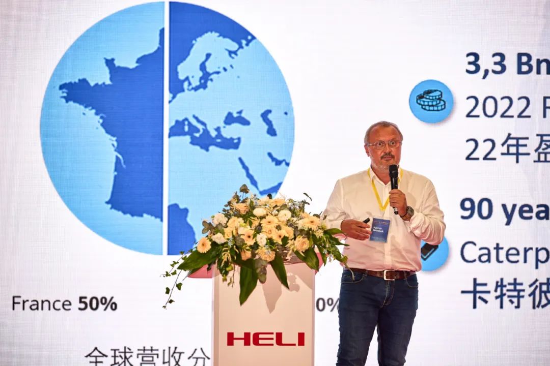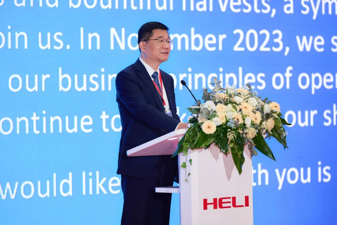 众人之力,无不胜也。杨安国致开幕词,代表安徽叉车集团向远道而来的各位贵宾表示热烈的欢迎,向奋战在全球一线市场的合力人表示诚挚的问候。合力自1958年诞生以来,始终聚焦主责主业,坚定全球一流工业车辆及智能物流系统集成商战略目标,向着产品卓越、品牌卓越、创新领先、治理现代的世界一流企业奋进,成长为中国第一,销量全球第二,营收世界第七的工业车辆民族品牌,以全力奔跑姿态向全球产业链价值链中高端加速迈进。如今合力已正式运营欧洲合力、法国合力、美国合力、南美合力、大洋洲合力、中东合力、东南亚合力等8个海外公司和1个海外研发中心,产品销往180多个国家和地区,在全球30+国家和地区合力产品市场占有率第一,覆盖“一带一路”沿线95%以上国家和地区,合力的金字招牌越擦越亮。这生动诠释了一代代合力人聚沙成塔、奋发向上的必胜信念。
