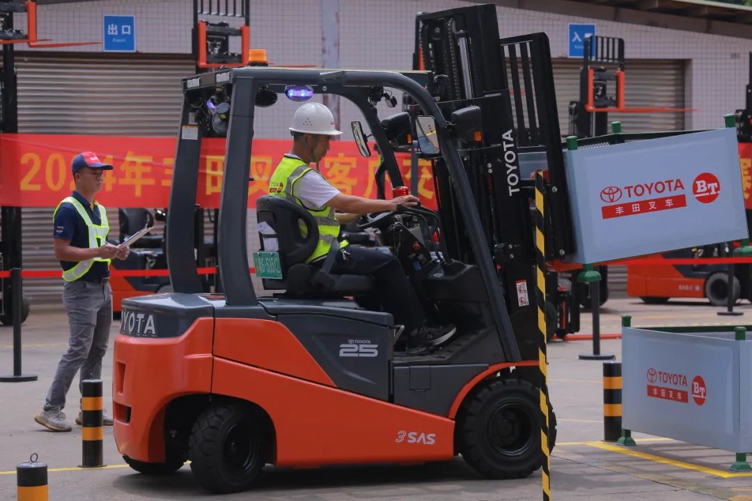 随后的活动中,丰田叉车、东莞金丰与现场来宾深入探讨了丰田的安全、精益物流等多项解决方案。休息片刻过后,扣人心弦的驾驶技能大赛正式开始。