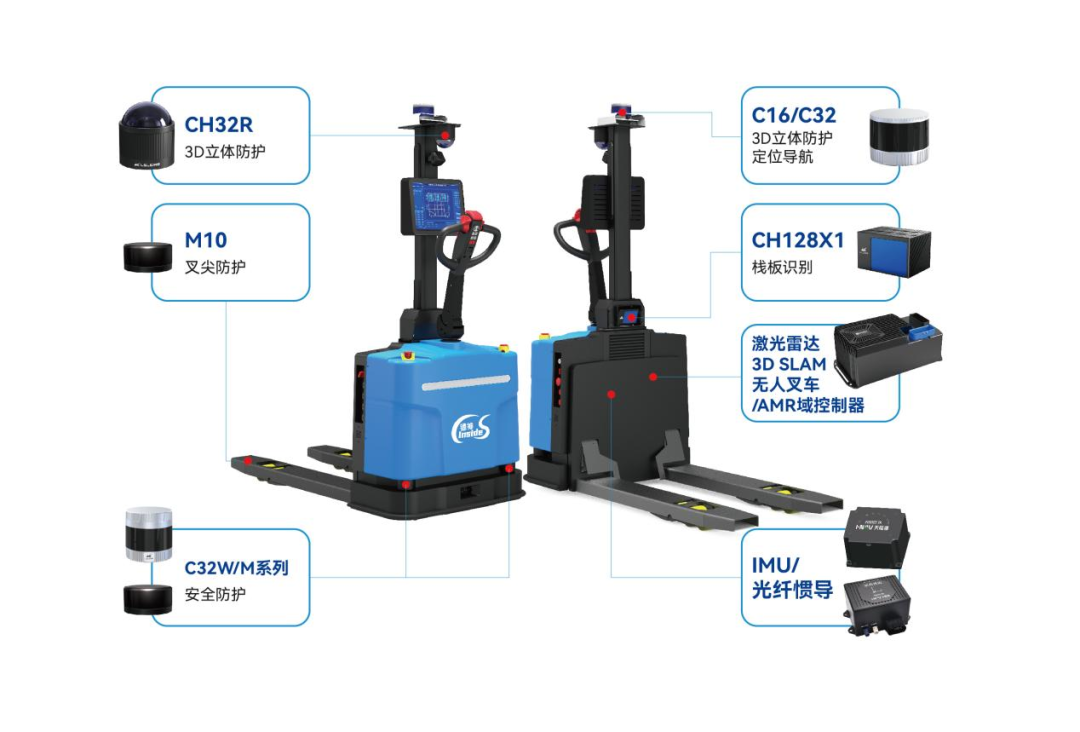 这款产品是镭神智能多年技术积累的结晶,它采用了全球领先的多线激光雷达3D SLAM定位导航技术,实现了无人叉车的高精度、全天候、全场景作业能力。