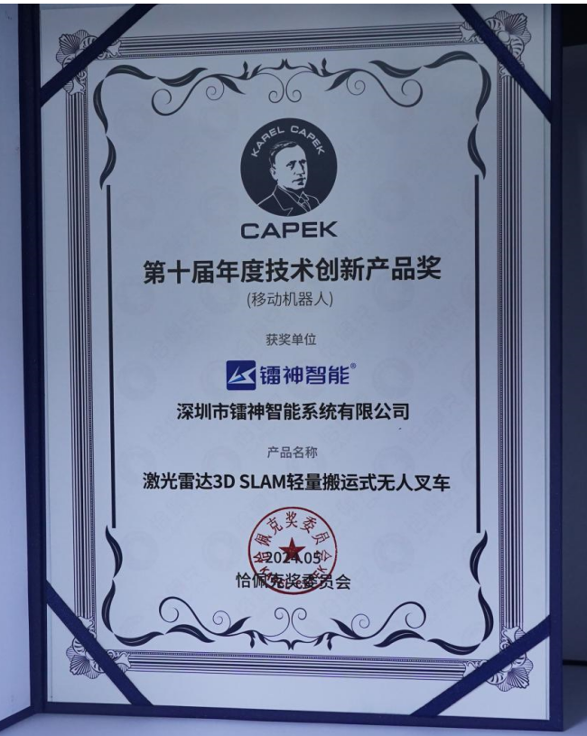 恰佩克奖,作为技术创新领域的风向标,其分量不言而喻。镭神智能的激光雷达3D SLAM轻量搬运式无人叉车(简称“小地牛”)能够在此评选中拔得头筹,足见其在技术创新上的深厚功底和前瞻视野。