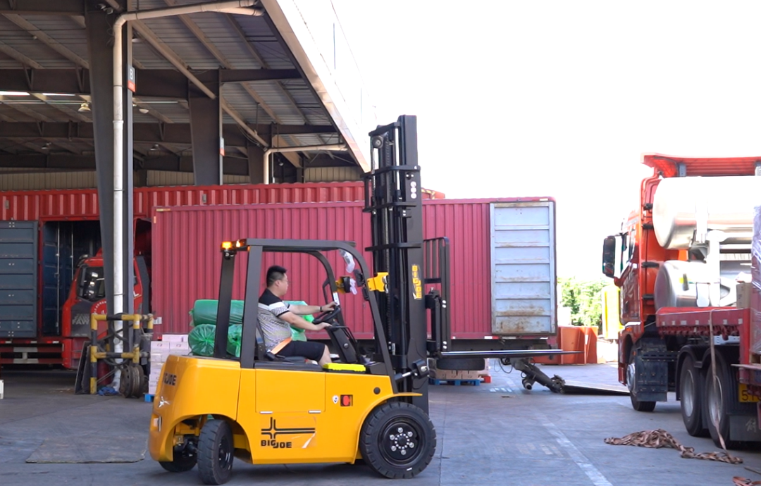 步入园区各物流档口,随处可见的X4锂电叉车高效作业。精准叉取货物,有力托举,快速高效完成货物装卸。