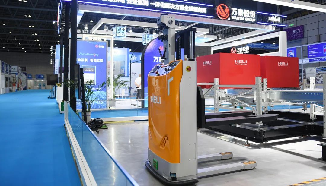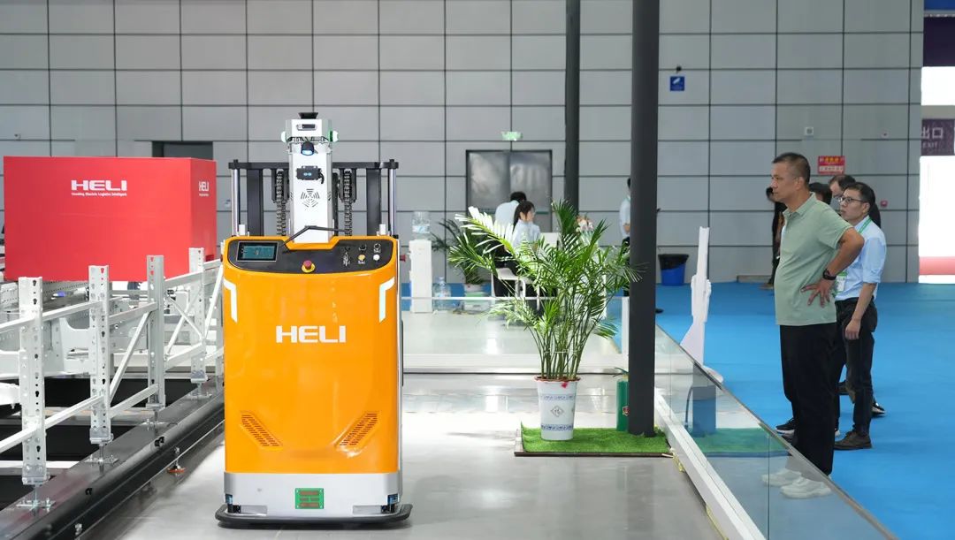 此次展出的堆垛式AGV是迭代升级款产品,采用3D视觉避障,全方位多重保障机器人安全运行;浮动式驱动系统更好地适应不同工况状态下的路面;除伸缩式充电头自动充电,还配置了隐藏式手动充电口,支持快速更换新电池,确保了AGV机器人作业的连续性和高效率。
