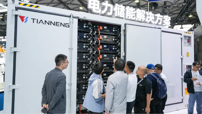 在N3-310展区,天能全景演绎了“多技术、全场景、全生态”安全储能解决方案,并展示了包括314Ah电芯、5MWh电池舱、372kWh液冷工商业储能系统、户用储能柜在内的多款产品及天枢智慧能源云平台,吸引了参观者驻足了解。
