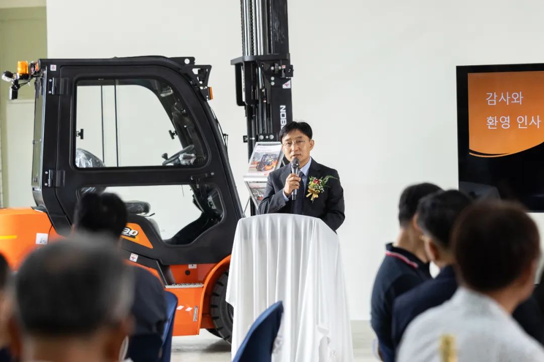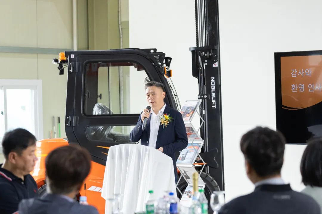 开业现场气氛热烈,刘云华先生代表公司发表致辞。他首先对莅临现场的每一位来宾表示热烈欢迎,并特别感谢了Mr.Kay Kang及其团队为筹建韩国子公司的辛勤工作,以及诺力合作伙伴和客户的信任与支持。他向来宾们分享了诺力正在建设五期工厂及上海国际总部的喜讯,他表示,随着新工厂、新子公司、各类人才的不断投入及各方的共同努力,诺力必将在业内树立起更加值得信赖的品牌形象。