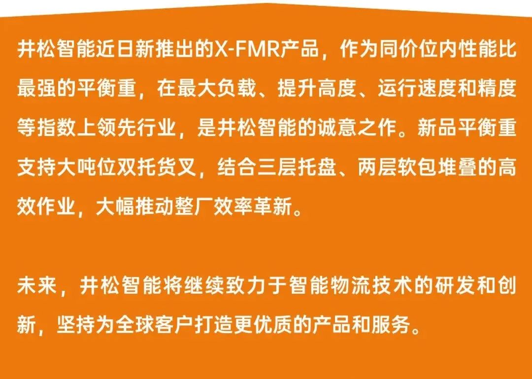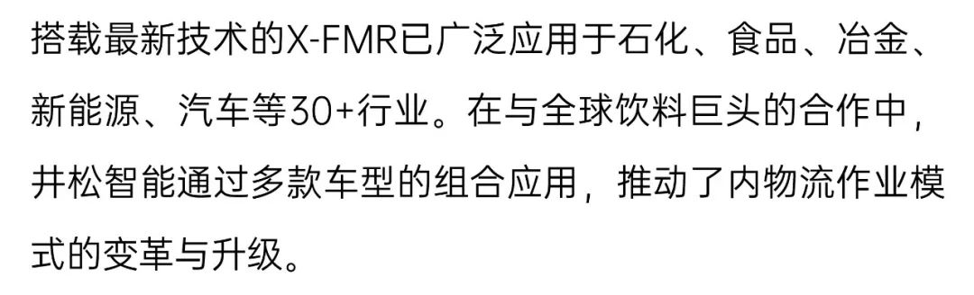 9月25号,井松智能副总经理王丹在中国机器人高峰论坛上宣布推出全新产品品类——X-FMR下一代智能叉取机器人,X-FMR是专为智能工厂和仓储企业设计的下一代智能搬运解决方案。