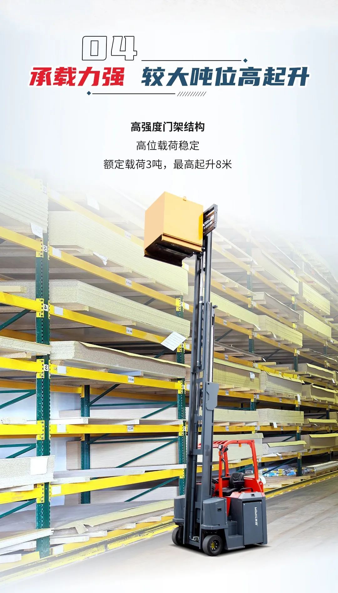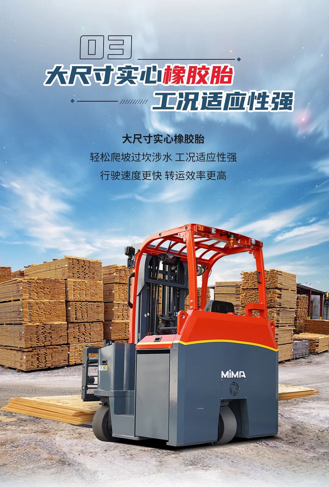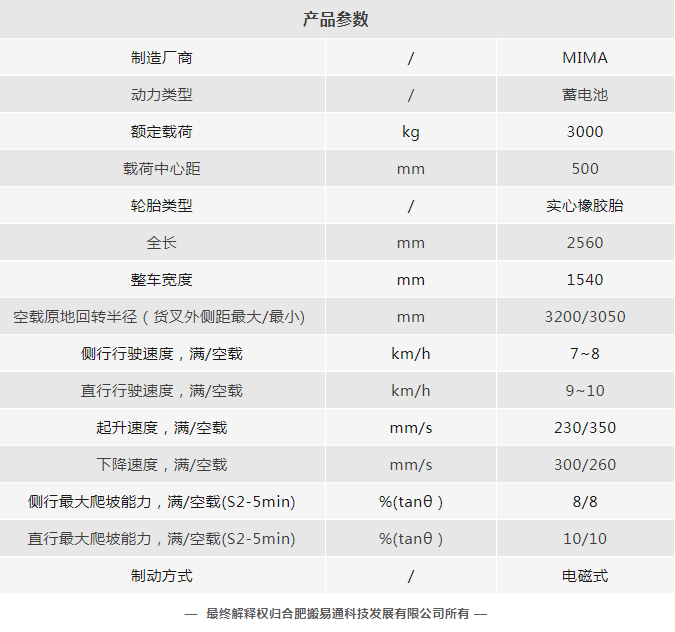 二十多年不断进取, MIMA 品牌以公司强大的科研创新团队为依托,以“安全、耐用、舒适、低碳(环保)”为设计理念,为客户提供500KG —100000KG应用解决方案、仓储设备及 相关服务。 通过不断的技术创新和专利积累,现在我们的产品已涉及12大类50多个品种,如电动托盘车搬运车、托盘堆垛车、前移式叉车、平衡重式叉车、牵引拖车、拣选车、窄巷道叉车、四向叉车、侧面叉车和非常物流设备、AGV、无人巷道堆垛机等等。产品广泛 应用于医药、食品、化工、电子、机械、家具、物流等各个行业。