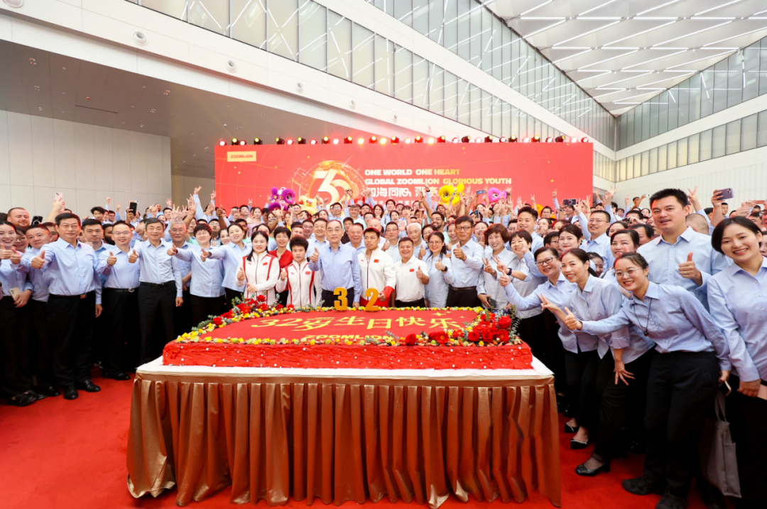 9月28日,以“四海同心 青春共庆”为主题的中联重科32周年庆祝活动在中联智慧产业城总部科研大楼隆重举行。中联重科党委书记、董事长、CEO詹纯新出席活动并向全球员工寄语祝福。他在讲话中感谢伟大祖国和伟大时代,感谢各级领导、所有的客户和各界朋友,感谢全体员工、离退休老同志和广大员工家属,并向全球3万多名员工致以诚挚的问候和最美好的祝福。