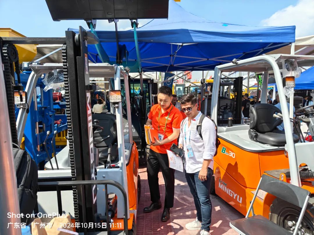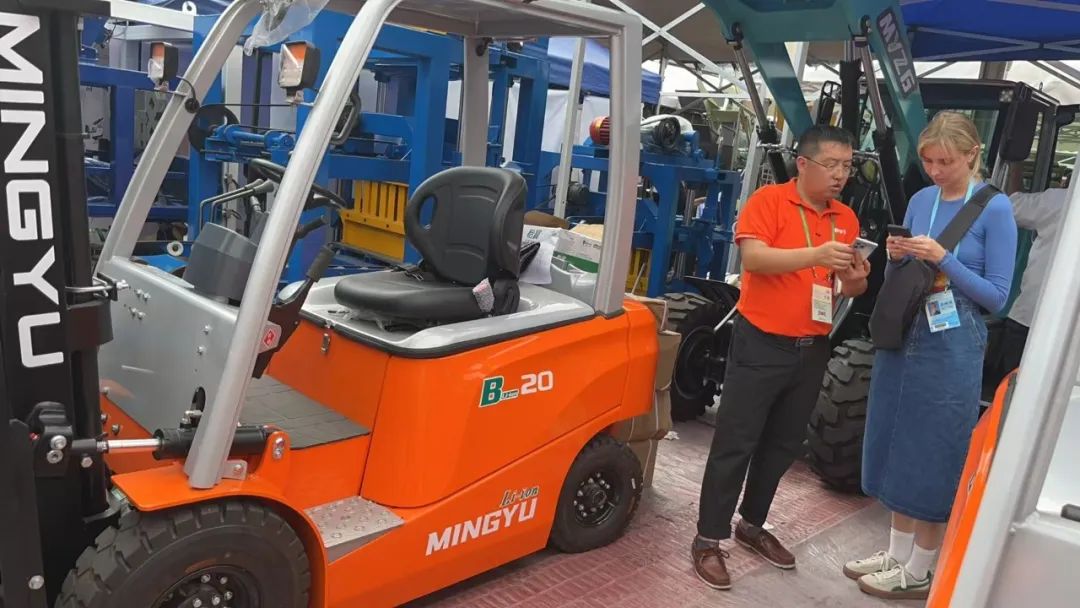 这些国际采购商们,带着对未来工程机械的期许与展望,纷纷驻足于明宇重工的展位前。他们被明宇的新产品所深深吸引,那一辆辆崭新的电动工程机械,仿佛是开启未来工程建设新潮流的钥匙。