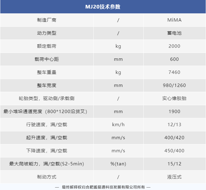 二十多年不断进取, MIMA 品牌以公司强大的科研创新团队为依托,以“安全、耐用、舒适、低碳(环保)”为设计理念,为客户提供500KG —100000KG应用解决方案、仓储设备及 相关服务。 通过不断的技术创新和专利积累,现在我们的产品已涉及12大类50多个品种,如电动托盘车搬运车、托盘堆垛车、前移式叉车、平衡重式叉车、牵引拖车、拣选车、窄巷道叉车、四向叉车、侧面叉车和非常物流设备、AGV、无人巷道堆垛机等等。产品广泛 应用于医药、食品、化工、电子、机械、家具、物流等各个行业。