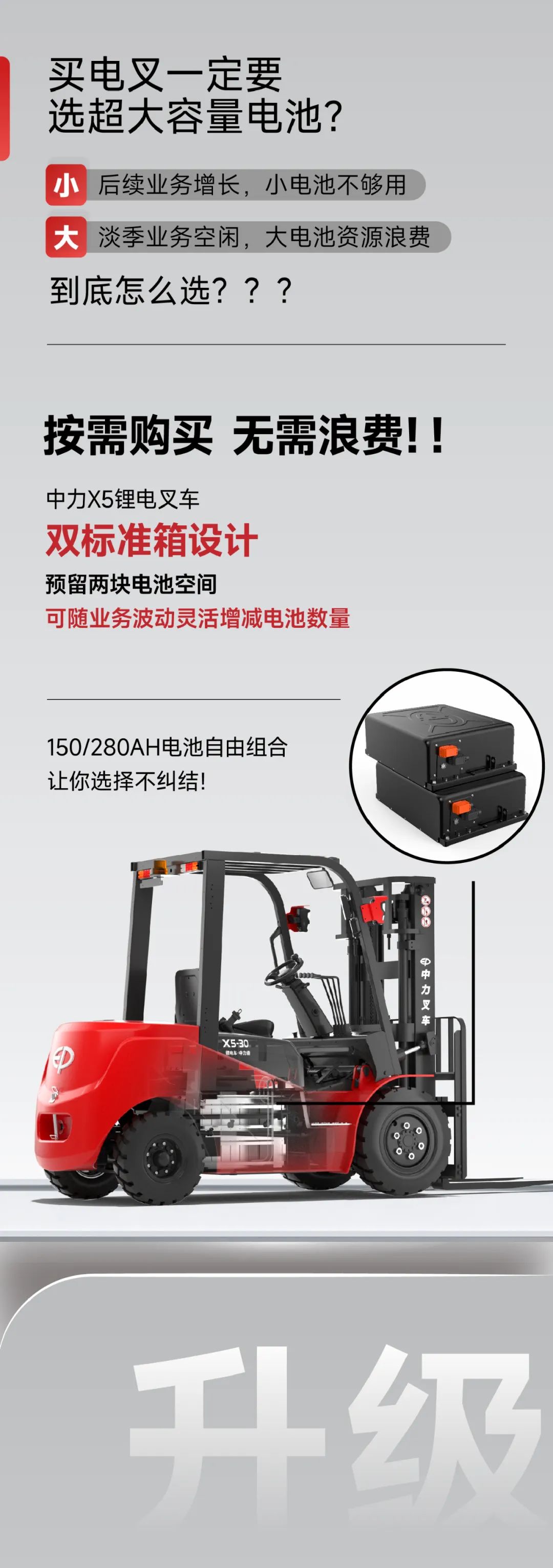 扩容加电,续航不设限!中力X5锂电叉车震撼入市