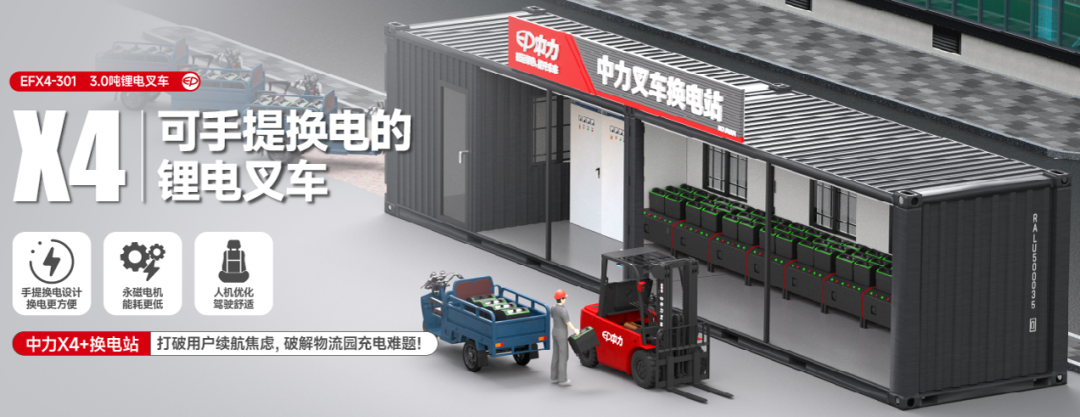 专研物流园区搬运痛点,中力“换电站+X4手提换电锂电叉车+租赁”整体解决方案破解园区安全用电难题,助力园区绿色高效转型!