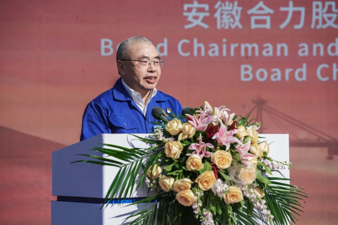 仪式开始,杨安国首先对各位领导与嘉宾的到来表示热烈的欢迎和衷心的感谢,并深情回顾了合力国际化的发展历程,为所取得的出口成绩表示自豪。他指出,合力要始终秉承“一群人,一辈子,干好一件事”的企业精神,紧扣时代脉搏,持续完善以中国为总部、以区域为重点的全球市场布局,逐渐将合力打造为世界工业车辆行业一张闪耀的“中国名片”。他强调,年度第10万台整车出口发运,既是对合力深入实施国际化战略的成绩总结,更是合力向着更广阔征途奋进的全新起点。面对未来,合力将深入学习贯彻习近平总书记考察安徽重要讲话精神,抢抓长三角一体化和“一带一路”战略发展新机遇,持续拓展全球化建设,努力在服务和融入新发展格局上展现新作为!