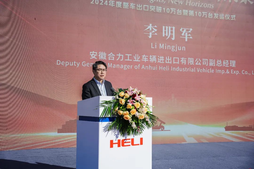 扬帆出海高歌进,合力同行铸辉煌。为庆祝年度整机出口佳绩,彰显合力全球化战略与拓展国际市场的信心与决心,展现中国智造的崛起与辉煌,10月25日,合力2024年度整车出口突破10万台暨发运仪式在工业园隆重举行。本次活动以年度出口第十万台为主线,传达“勇攀新高峰,合力创未来”的信念,在各位领导嘉宾以及全体合力人的瞩目与期待之中,缓缓拉开生动磅礴的画卷。