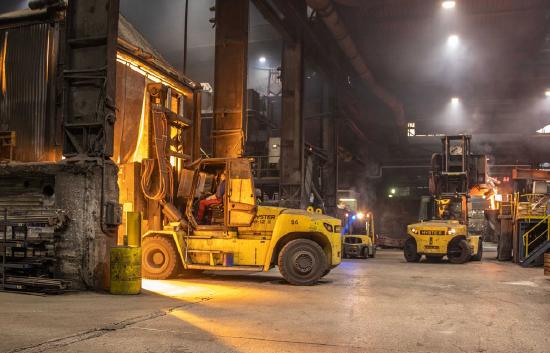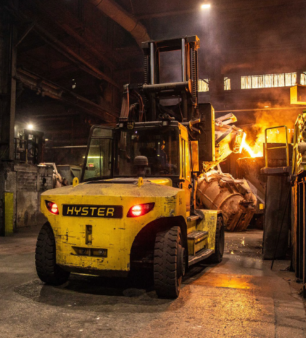 专业的重型海斯特叉车,可承受高强度的工作以及烤箱周围的极端温度(熔化铁的温度超过2700°F)