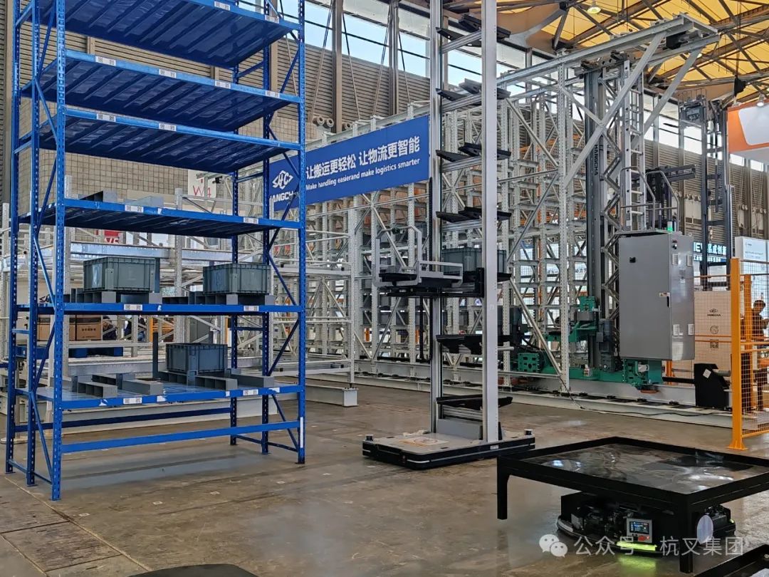 现场发布的另外一款重磅产品—高速料箱堆垛机,是基于行业痛点,在日本料箱堆垛机技术基础上进行集成创新,并依托杭叉集团强大的供应链及先进制造优势,使得该产品具备了强大的市场竞争力,引起了大批观众的驻足关注。该产品综合性能指标国际先进,其中行走速度达360m/min,加速度4m/s²,起升速度达180m/min,加速度5m/s²,双驱伺服抱夹式行走电机配合起升同步带结构,满足客户高节拍需求。