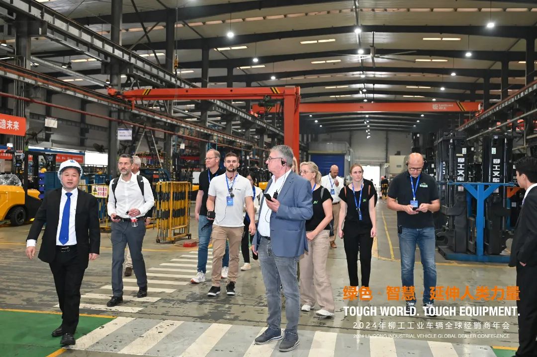Led by General Manager of LiuGong Industrial Vehicle Mr. Li Hanchi and Executive Vice General Manager Mr. Xiao Yuanxiang, the dealer representatives visited the brand new manufacturing plant of LiuGong Industrial Vehicle after 14th Five-Year-Plan lean production and transformation. Through this on-site visit, the representatives learned more about LiuGong Forklift’s manufacturing process, quality control and technological innovation, then highly appraised of LiuGong's production capacity and technical innovation.