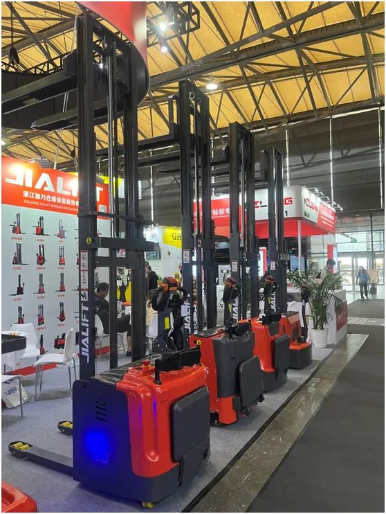3. 2吨大吨位堆垛车:载重能力强,工作时间长,大吨位堆垛车显著提高了物流效率和生产力水平,成为展会上的一大亮点。