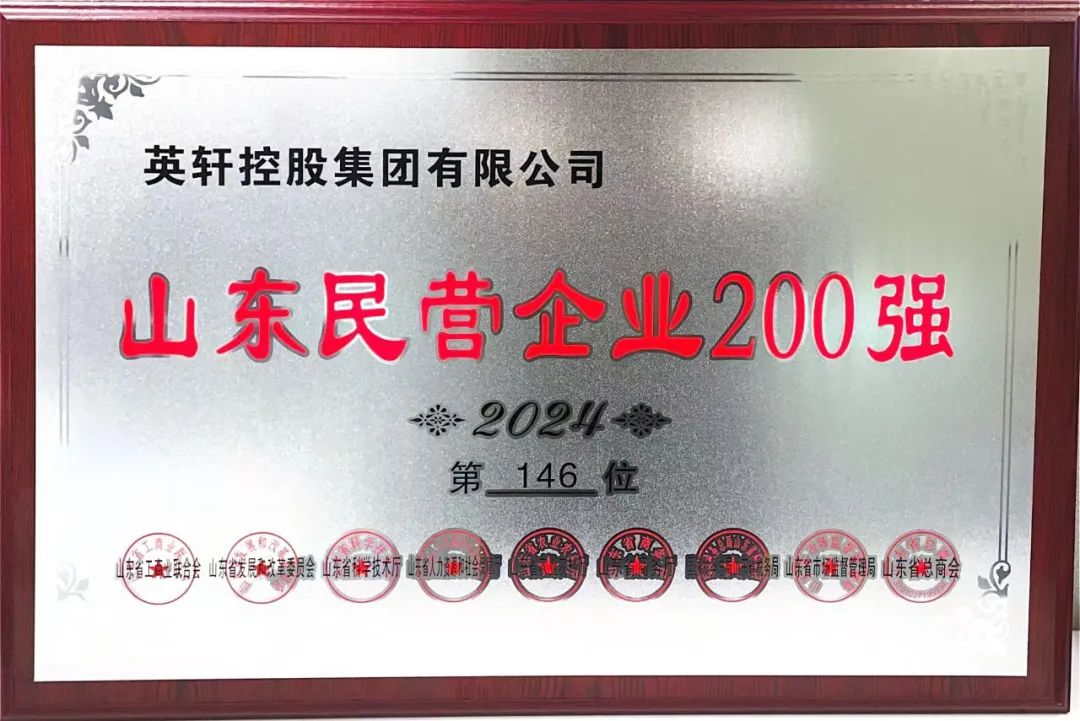 近日,由省工商联、省发展改革委、省科技厅、省人力资源社会保障厅、省农业农村厅、省商务厅、省税务局、省市场监管局等多个部门联合举办的“2024山东民营企业百强系列榜单”正式发布,英轩控股集团有限公司荣登“2024山东民营企业200强”榜单。