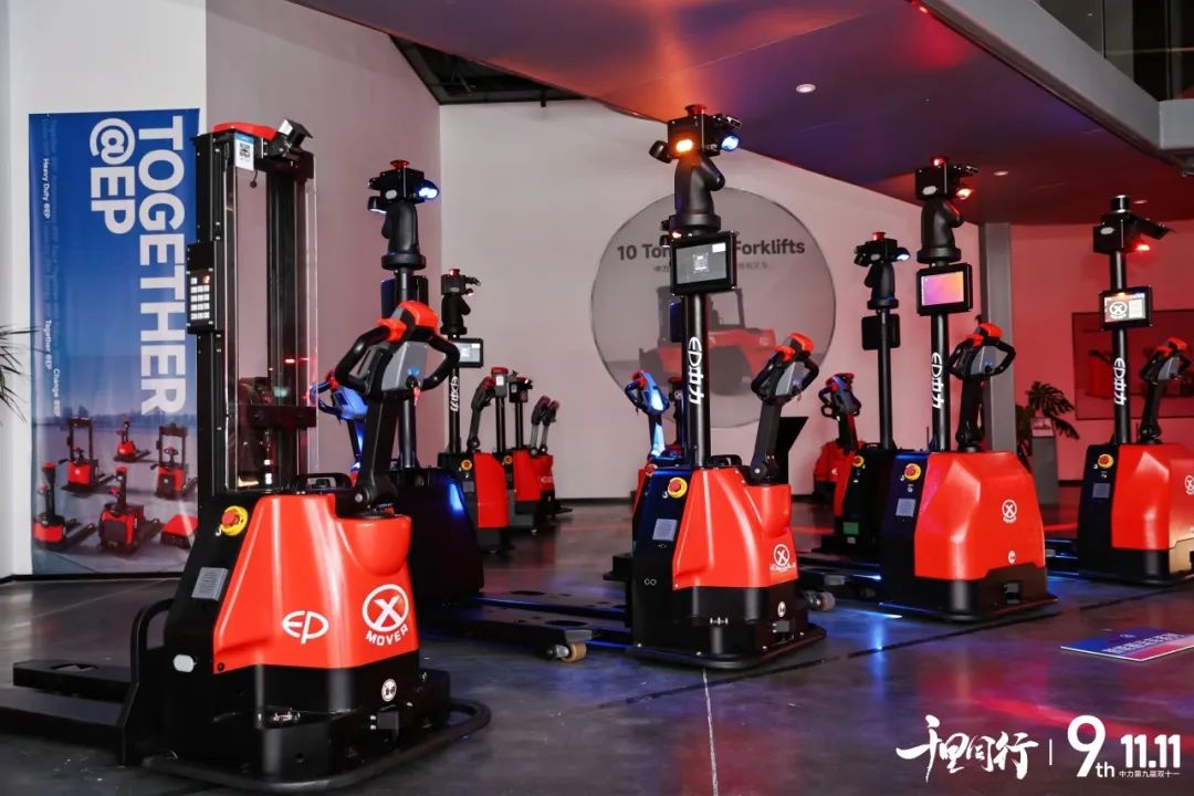 活动当天,中力数智全系搬马机器人神秘亮相,全场灯光关闭,仅有各个搬运机器人车身上的导航及安全保障等部位发出的亮眼光线,共同汇聚成一道道穿破市场迷雾的希望之光!