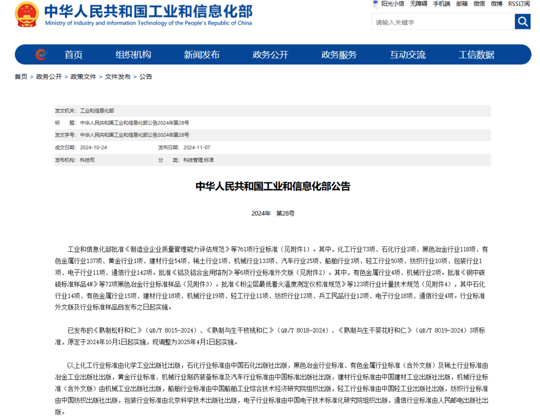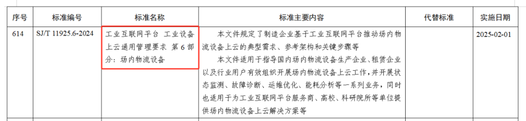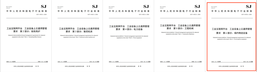 2024年11月7日,工业和信息化部发布2024年第28号公告,批准《工业互联网平台 工业设备上云通用管理要求》系列《第2部分:炼铁高炉》、《第3部分:数控机床》、《第4部分:电力设备》、《第5部分:工程机械》、《第6部分:场内物流设备》、《第7部分:水轮发电机组》、《第8部分:采矿设备》、《第9部分:选冶设备》、《第10部分:工程车辆》9项行业标准正式发布。上述系列行业标准均由全国信息化和工业化融合管理标准化技术委员会(SAC/TC573)归口管理,对于指导企业科学提升工业设备上云用云水平、赋能数字化设备更新与技术改造、加快制造业数字化转型步伐具有重要意义。