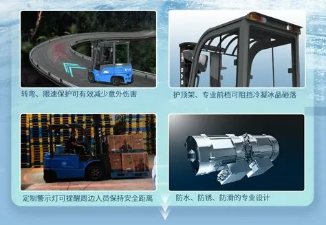 面对企业产能巨大,日出货量大的情况,安全高效的搬运设备也成为了其诉求之一。比亚迪叉车可随充随用,有效提高工作效率,此外,在安全方面也有着独特设计及解决方案,转弯、限速保护可有效防止驾驶中的意外伤害;护顶架、专业前档可阻挡冷凝冰晶砸落;可定制蓝光保护灯,提醒周边人员保持安全距离;更增加了防水、防锈、防滑的专业设计,确保高效的同时更让人多了几分安心。