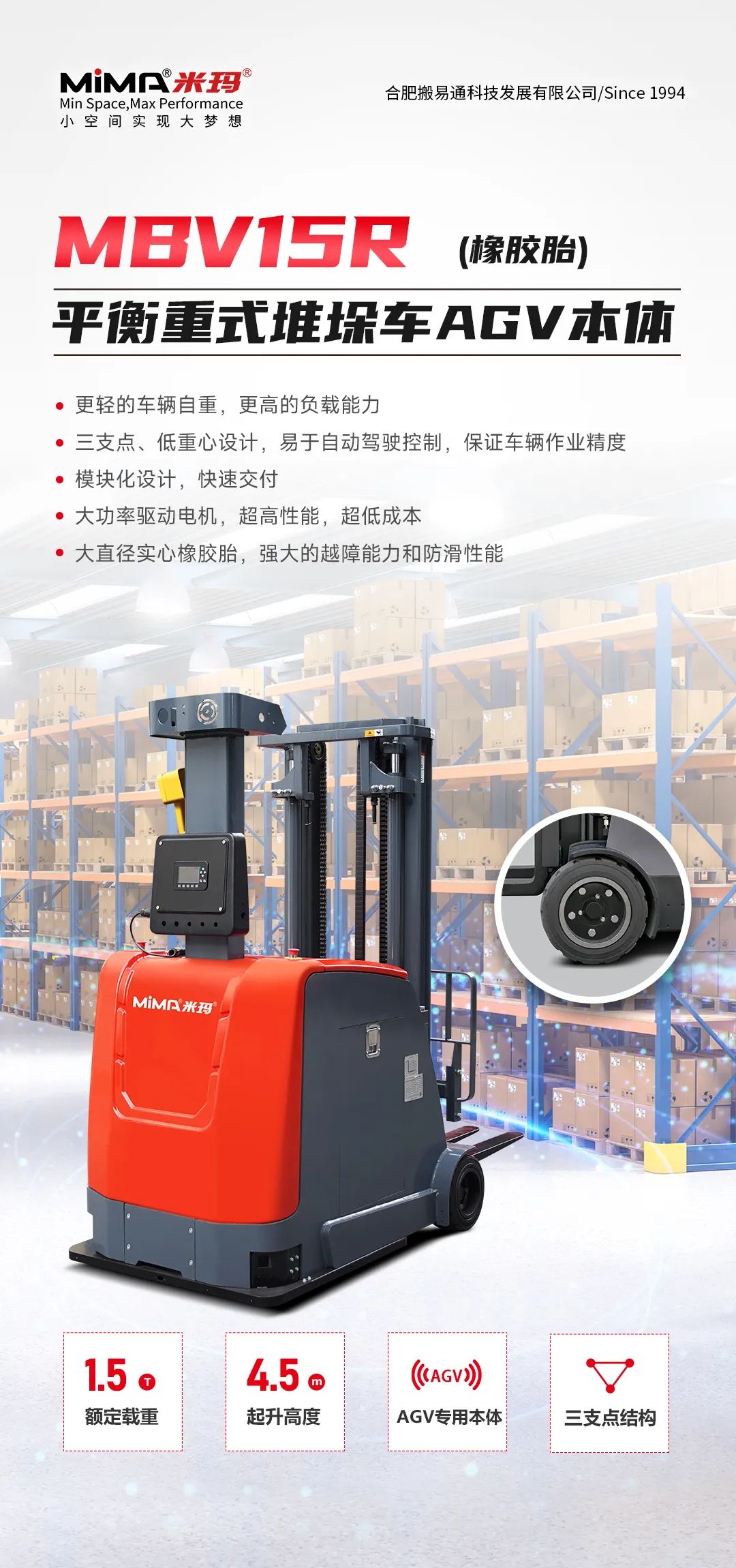 随着智能制造与现代物流行业的不断推进,传统人工搬运方式逐步被自动化、智能化的解决方案所替代。AGV叉车(无人叉车)作为现代物流自动化及柔性制造领域的关键工具,尤其在特殊工况下表现出色。合肥搬易通(MiMA米玛)最新推出的MBV15R(橡胶胎)平衡重AGV叉车本体,更是以强大的适应性,轻松应对厂区各类复杂工况,不仅可以提升物流效率,还能有效降低仓储成本。
