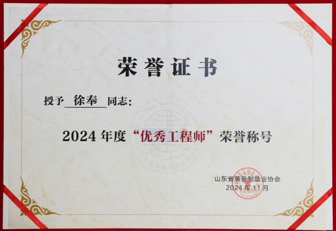 11月29日,由中国机械工业联合会、山东省工信厅、科技厅指导,山东省装备制造业协会主办的“2024年度(第五届)山东省装备制造业科技创新大会”在济南召开。本次大会上,英轩重工有限公司因在科技创新方面的突出表现荣获 “2024年度科技创新示范企业”称号。
