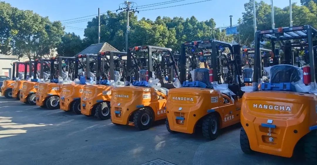 近日,杭叉集团批量锂电叉车交付上海某港口,助力海运龙头企业。