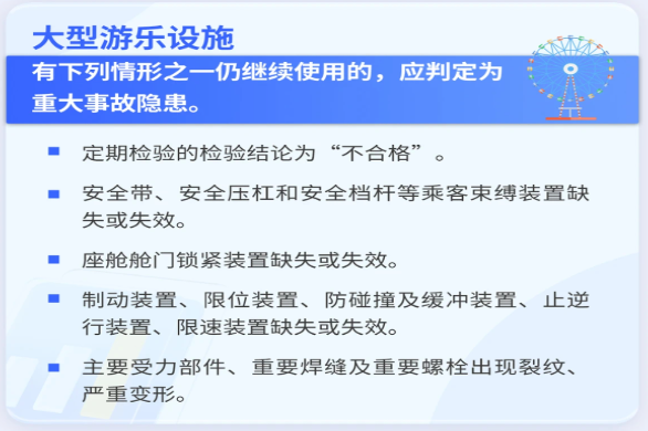 本条款是对在用大型游乐设施重大事故隐患的具体判定要求。