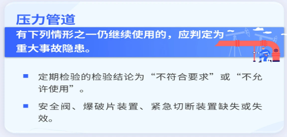 本条款是对在用压力管道重大事故隐患的具体判定要求。