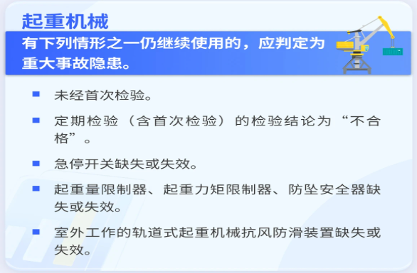 本条款是对在用起重机械重大事故隐患的具体判定要求。