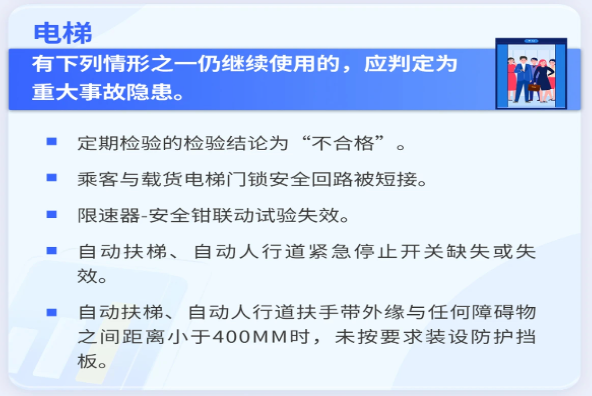 本条款是对在用电梯重大事故隐患的具体判定要求。