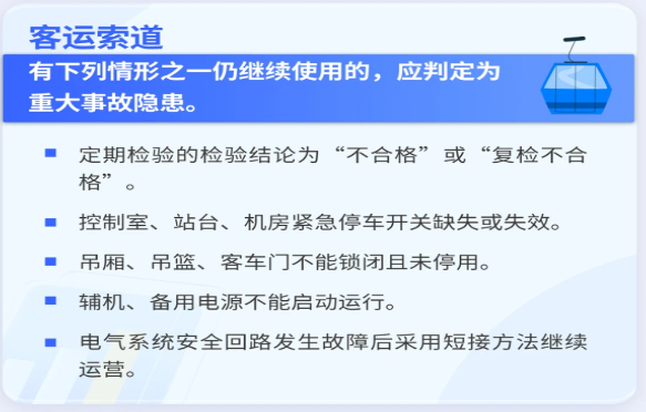 本条款是对在用客运索道重大事故隐患的具体判定要求。