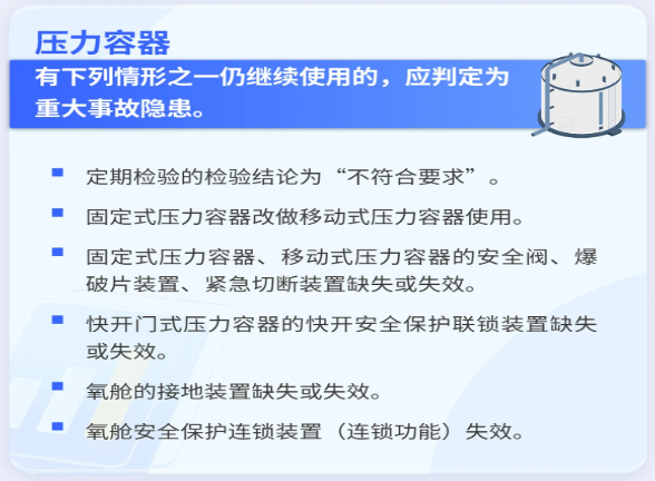 本条款是对在用压力容器重大事故隐患的具体判定要求。