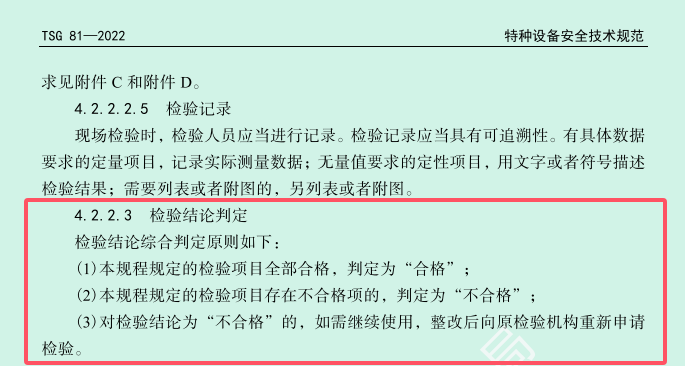 按《起重机械安全技术规程》第6.4条的规定对《特种设备安全监督检查办法》第二十五条中“经检验、检测不合格”进行了标准化定义。