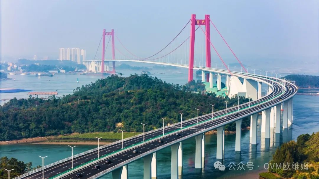 柳工欧维姆公司为龙门大桥提供锚碇锚固体系、缆载吊机等主要预应力产品及专业装备、配套技术服务,助力大桥建成通车。