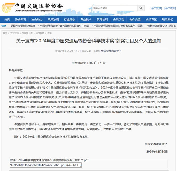 2024年12月31日,中国交通运输协会公布了“2024年度中国交通运输协会科学技术奖”获奖项目名单,和利时科技成果荣获科技进步奖一等奖一项、二等奖一项!
