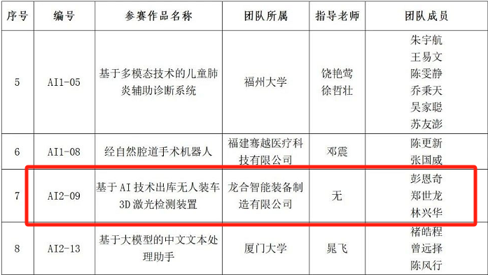 日前,第十四届海峡两岸信息服务创新大赛暨福建省第十八届计算机软件设计大赛决赛获奖名单正式公布,此次大赛由福建省工信厅、省教育厅、省人社厅、省中华职教社等八部门联合主办,吸引了来自全国65所院校、1005支队伍的积极参与。经过多轮评审和激烈角逐,龙合智能参赛的“基于AI技术出库无人装车3D激光检测装置”项目荣获人工智能赛道二等奖。